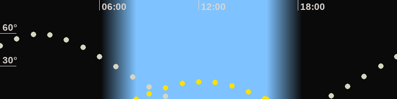 | Höchster Sonnenstand (Kulmination) | 12:10 Uhr (h = 15.9°) |