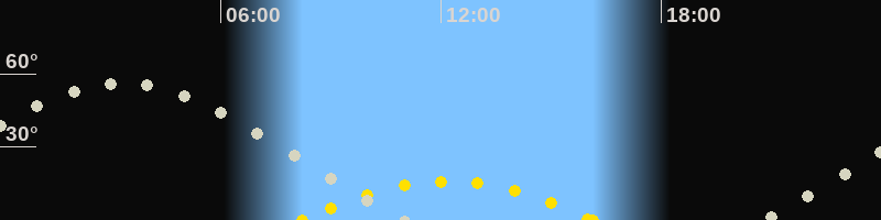 Höchster Sonnenstand (Kulmination)12:10 Uhr (h = 15.9°)