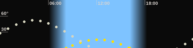 | Höchster Sonnenstand (Kulmination) | 12:11 Uhr (h = 16°) |