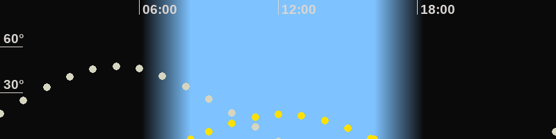 Höchster Sonnenstand (Kulmination)12:11 Uhr (h = 16°)