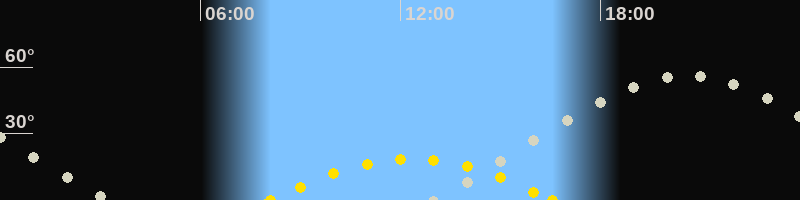| Höchster Sonnenstand (Kulmination) | 12:19 Uhr (h = 18.4°) |