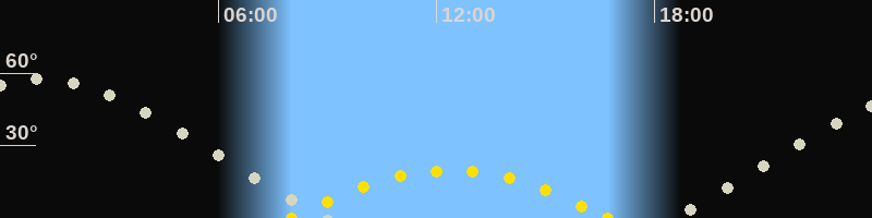 | Höchster Sonnenstand (Kulmination) | 12:21 Uhr (h = 19.7°) |
