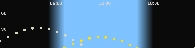 | Höchster Sonnenstand (Kulmination) | 12:22 Uhr (h = 20.7°) |