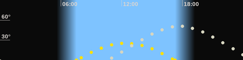 | Höchster Sonnenstand (Kulmination) | 12:24 Uhr (h = 25.4°) |