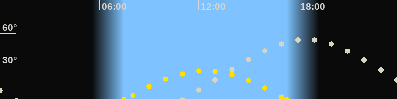 | Sonnenaufgang | 07:29 Uhr im Osten (αAz = 111.1°) |