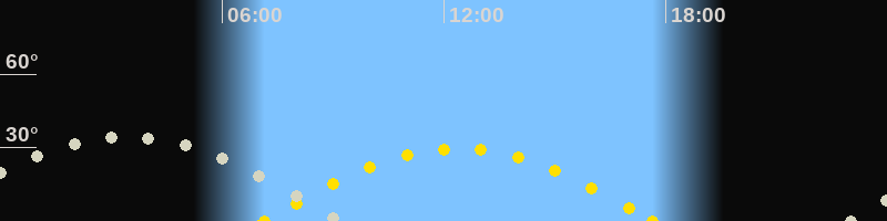 | Höchster Sonnenstand (Kulmination) | 12:23 Uhr (h = 29.6°) |