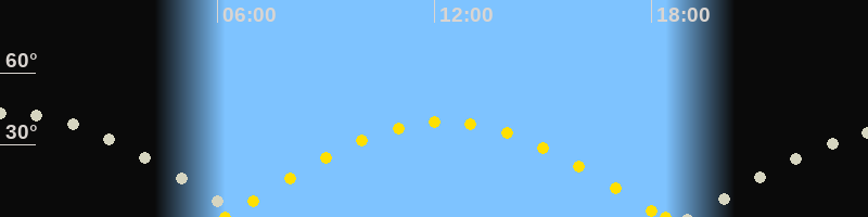 Höchster Stand (Kulmination)00:15 Uhr (h=43.3°)