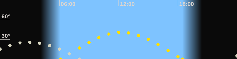 Höchster Sonnenstand (Kulmination)12:16 Uhr (h = 40.9°)
