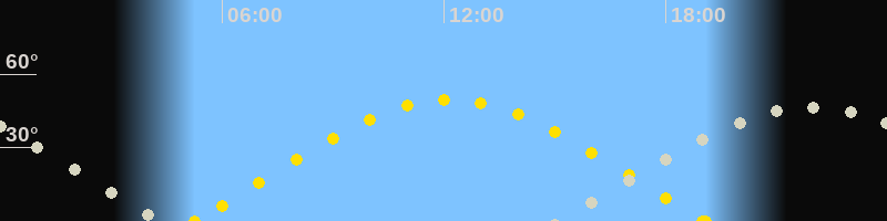 | Sonnenaufgang | 05:15 Uhr im Osten (αAz = 73.1°) |
