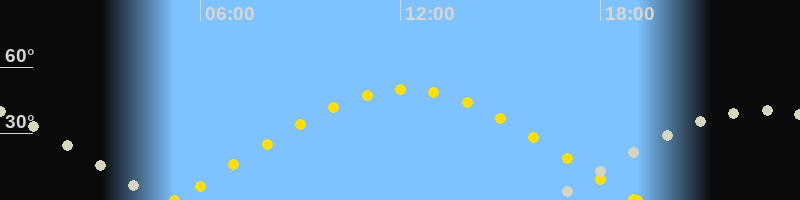 | Sonnenuntergang | 19:06 Uhr im Westen (αAz = 287.8°) |