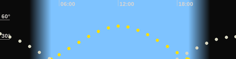 | Sonnenaufgang | 05:11 Uhr im Osten (αAz = 72°) |