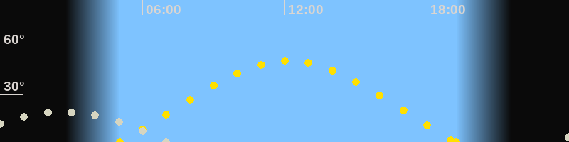 | Sonnenaufgang | 05:03 Uhr im Osten (αAz = 69.7°) |