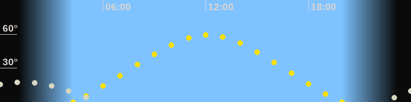 Höchster Sonnenstand (Kulmination)12:06 Uhr (h = 59.3°)