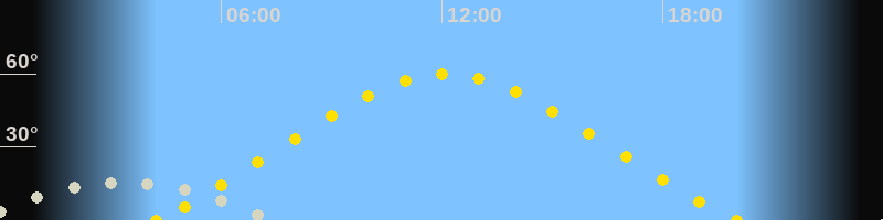 | Höchster Sonnenstand (Kulmination) | 12:06 Uhr (h = 59.7°) |