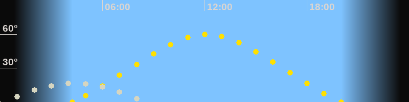 | Höchster Sonnenstand (Kulmination) | 12:07 Uhr (h = 59.9°) |