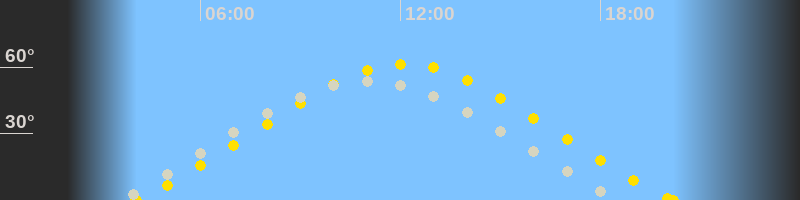 | Höchster Sonnenstand (Kulmination) | 12:08 Uhr (h = 61.4°) |