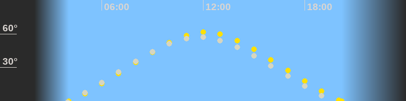 | Höchster Sonnenstand (Kulmination) | 12:08 Uhr (h = 61.5°) |