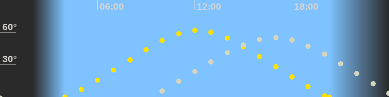 | Höchster Sonnenstand (Kulmination) | 12:09 Uhr (h = 62.2°) |
