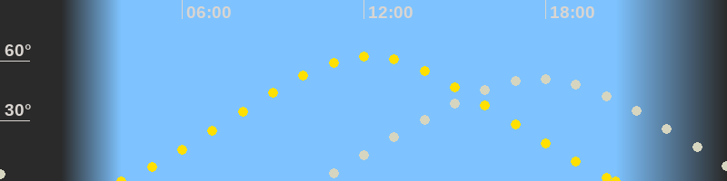 | Höchster Sonnenstand (Kulmination) | 12:09 Uhr (h = 62.2°) |