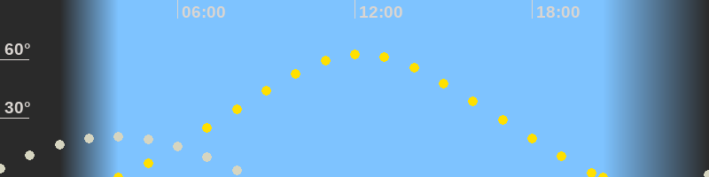 | Höchster Sonnenstand (Kulmination) | 12:12 Uhr (h = 62.7°) |