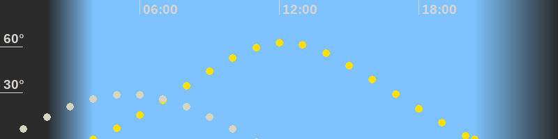 Höchster Sonnenstand (Kulmination)12:12 Uhr (h = 62.7°)