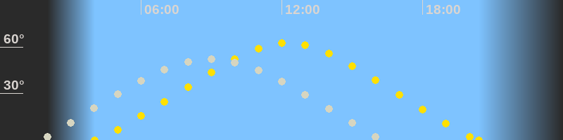 | Höchster Sonnenstand (Kulmination) | 12:13 Uhr (h = 62.5°) |