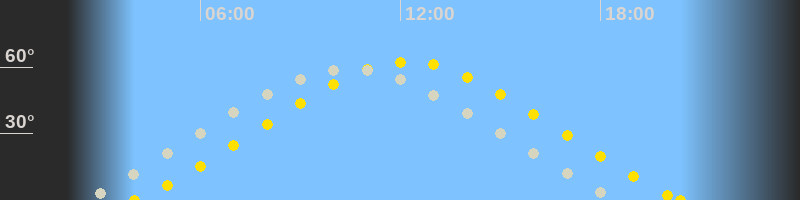 | Höchster Sonnenstand (Kulmination) | 12:14 Uhr (h = 62.4°) |