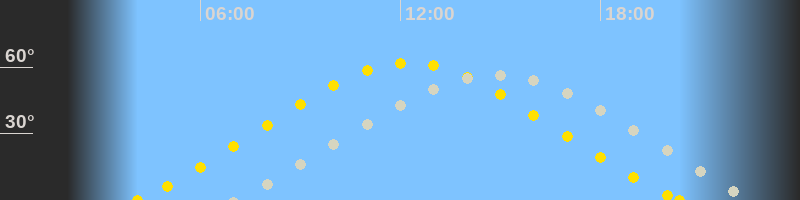 | Höchster Sonnenstand (Kulmination) | 12:14 Uhr (h = 62°) |
