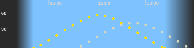 | Höchster Sonnenstand (Kulmination) | 12:15 Uhr (h = 61.8°) |