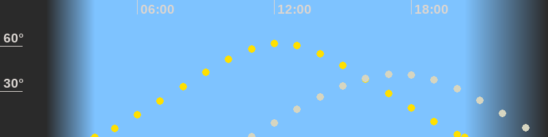 | Höchster Sonnenstand (Kulmination) | 12:15 Uhr (h = 61.7°) |