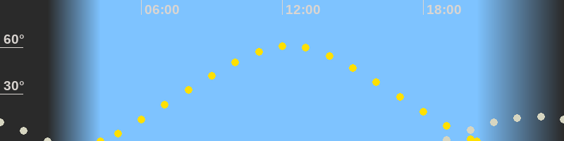 | Höchster Sonnenstand (Kulmination) | 12:16 Uhr (h = 60.9°) |
