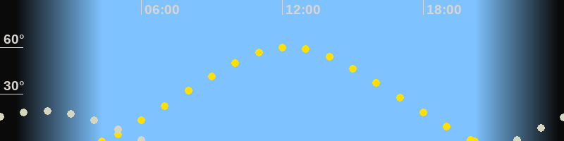 | Höchster Sonnenstand (Kulmination) | 12:16 Uhr (h = 60.2°) |