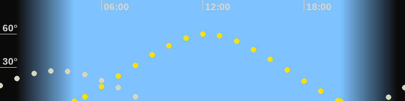 | Höchster Sonnenstand (Kulmination) | 12:16 Uhr (h = 59.8°) |