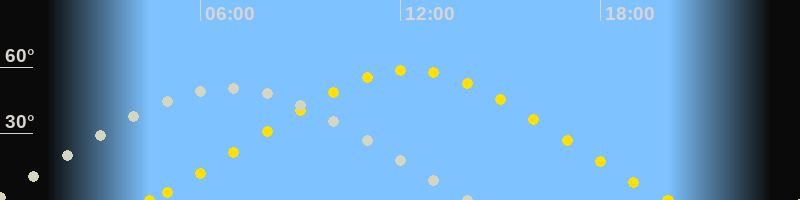 Höchster Sonnenstand (Kulmination)12:16 Uhr (h = 58.8°)