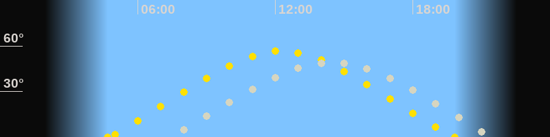| Höchster Sonnenstand (Kulmination) | 12:16 Uhr (h = 56.7°) |