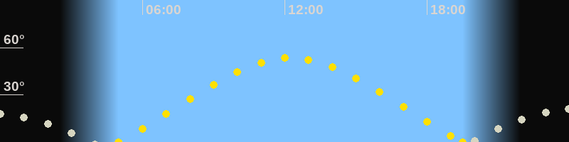 | Höchster Sonnenstand (Kulmination) | 12:14 Uhr (h = 53.5°) |