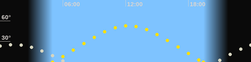| Sonnenaufgang | 05:01 Uhr im Nordosten (αAz = 67.3°) |