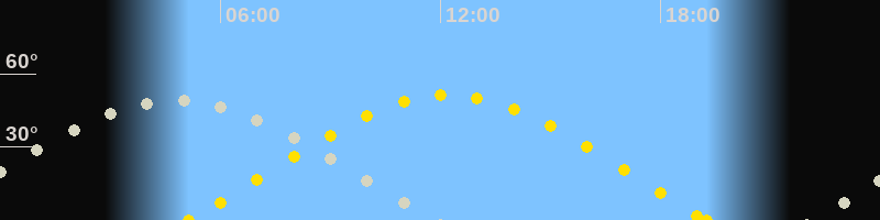 | Sonnenaufgang | 05:08 Uhr im Osten (αAz = 70°) |