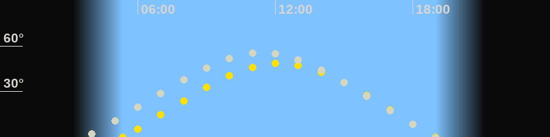 | Höchster Stand (Kulmination) | 11:25 Uhr (h=55.9°) |