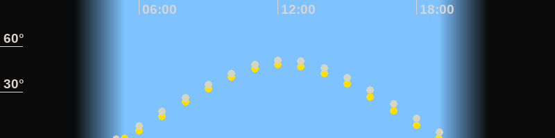 | Höchster Sonnenstand (Kulmination) | 12:10 Uhr (h = 48.1°) |