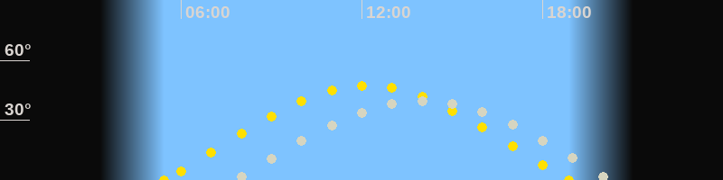 | Sonnenaufgang | 05:25 Uhr im Osten (αAz = 76.2°) |