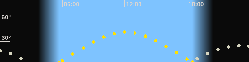 | Höchster Sonnenstand (Kulmination) | 12:06 Uhr (h = 43.7°) |