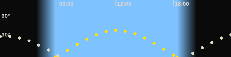 | Höchster Sonnenstand (Kulmination) | 12:05 Uhr (h = 42.5°) |