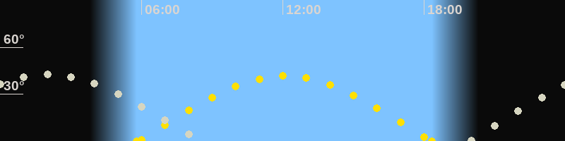 Höchster Sonnenstand (Kulmination)12:05 Uhr (h = 41.8°)