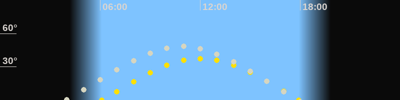 | Sonnenaufgang | 06:05 Uhr im Osten (αAz = 92°) |