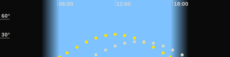 | Sonnenaufgang | 06:12 Uhr im Osten (αAz = 94.4°) |