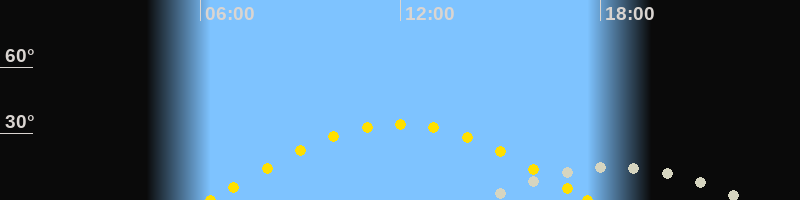 | Sonnenaufgang | 06:18 Uhr im Osten (αAz = 96.9°) |
