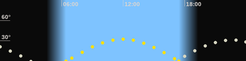 | Sonnenaufgang | 06:26 Uhr im Osten (αAz = 99.9°) |