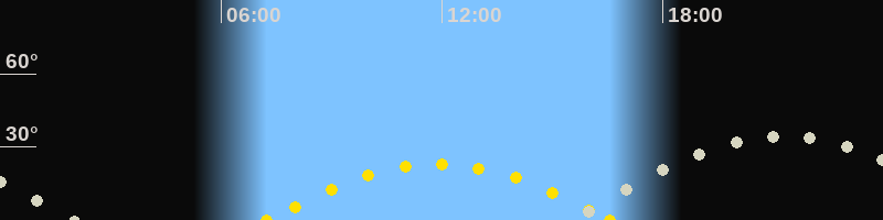 | Höchster Sonnenstand (Kulmination) | 11:53 Uhr (h = 22.9°) |