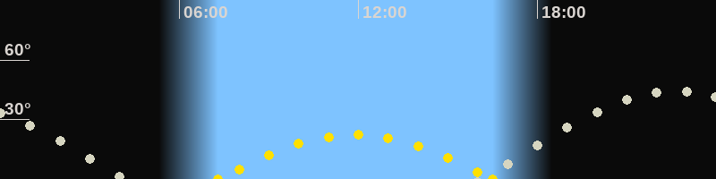 | Höchster Sonnenstand (Kulmination) | 11:54 Uhr (h = 22.3°) |